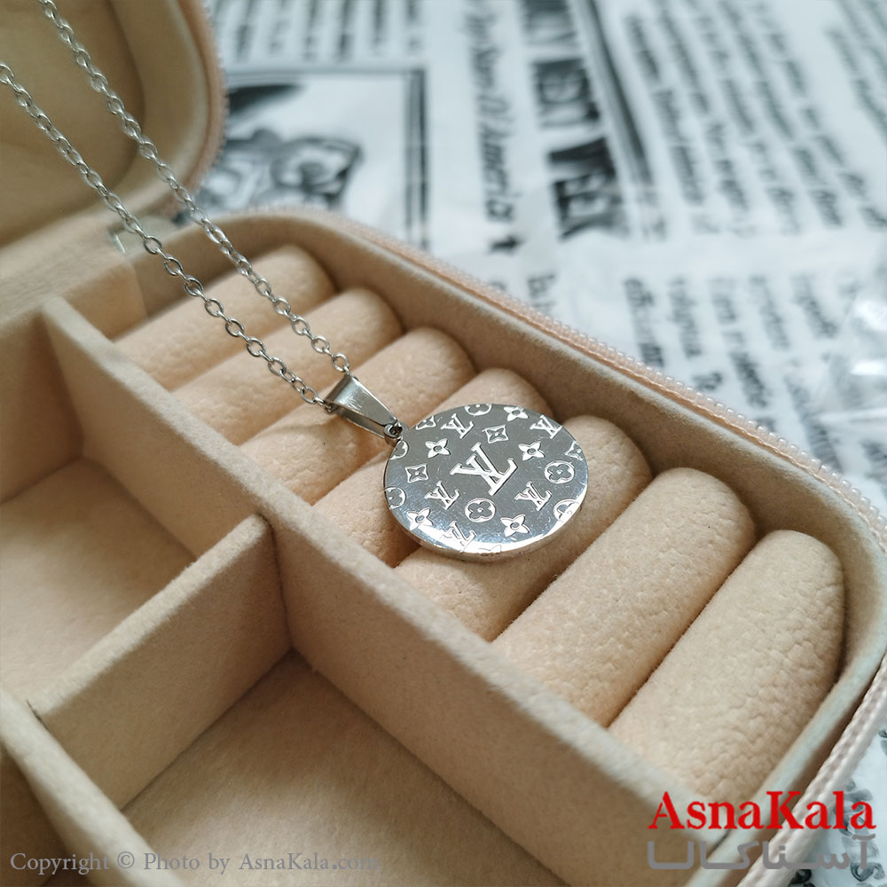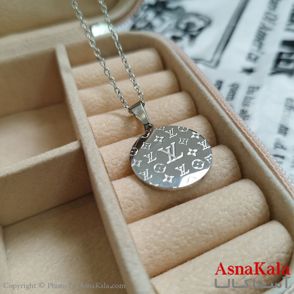 گردنبند LV نقره ای دخترانه استیل با زنجیر 45 سانتی متر کد GNB162116W