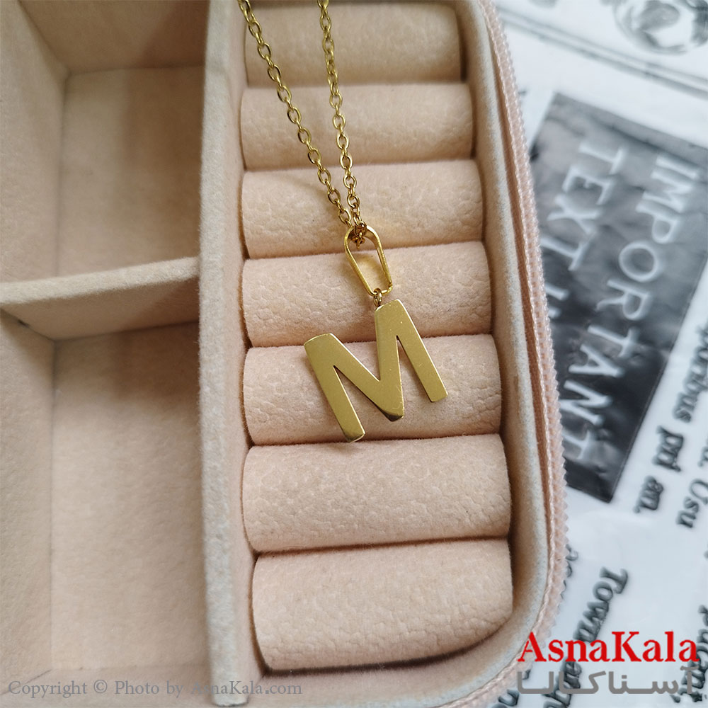 گردنبند M طلایی دخترانه استیل با زنجیر 45 سانتی متر کد GNB162061W