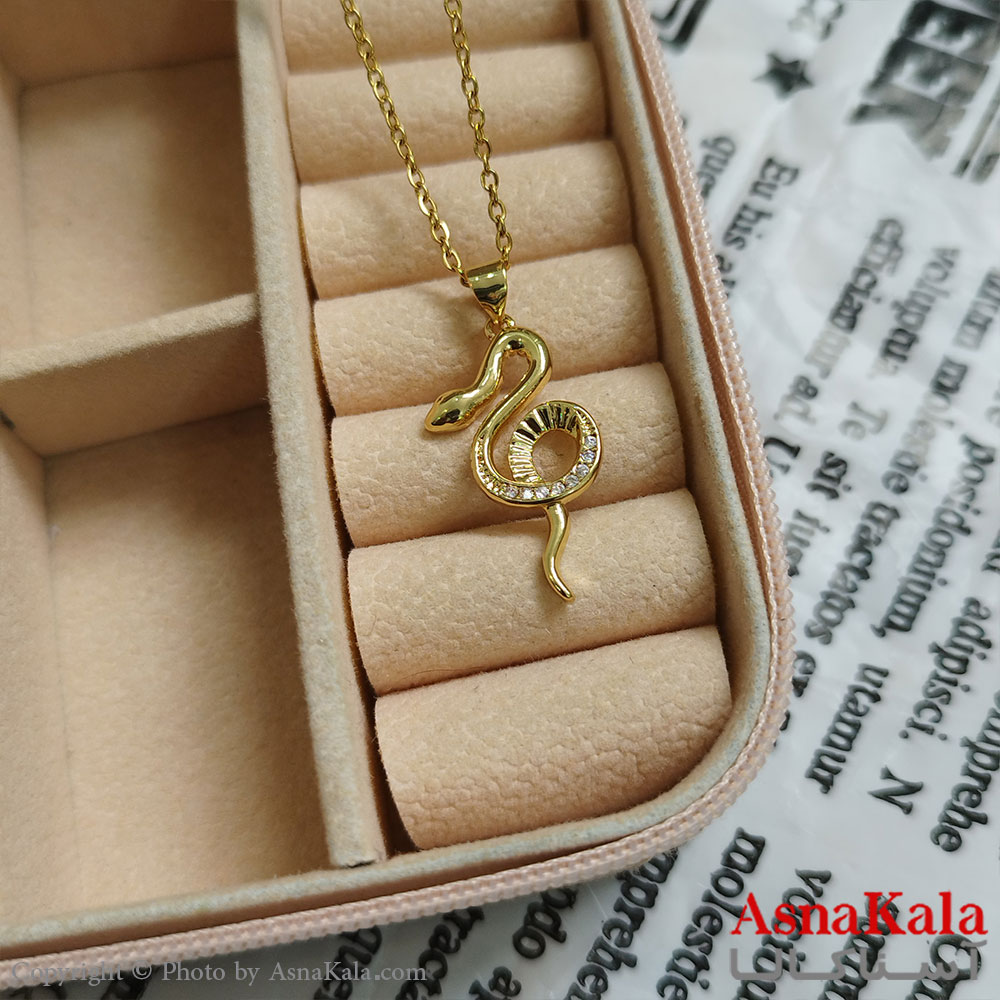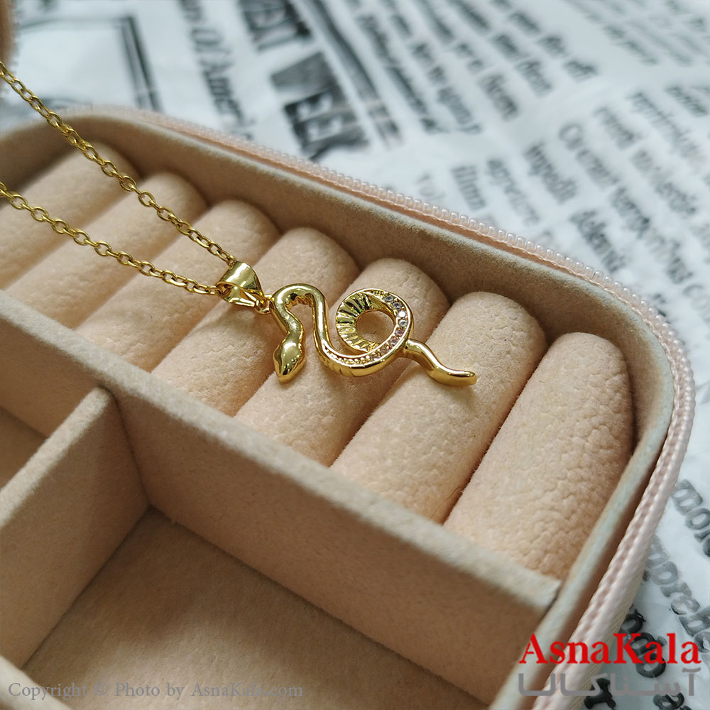 گردنبند مار طلایی دخترانه استیل با زنجیر 45 سانتی متر کد GNB162087W