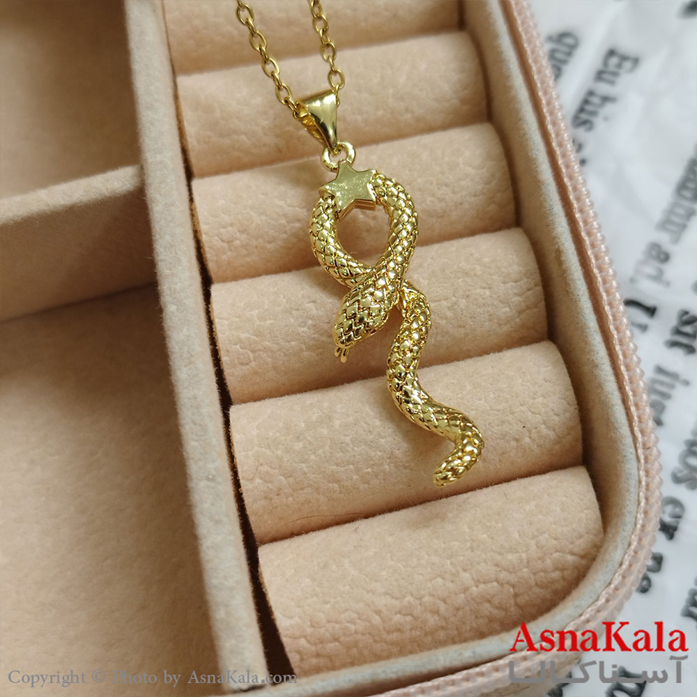گردنبند مار طلایی دخترانه استیل با زنجیر 45 سانتی متر کد GNB162089W