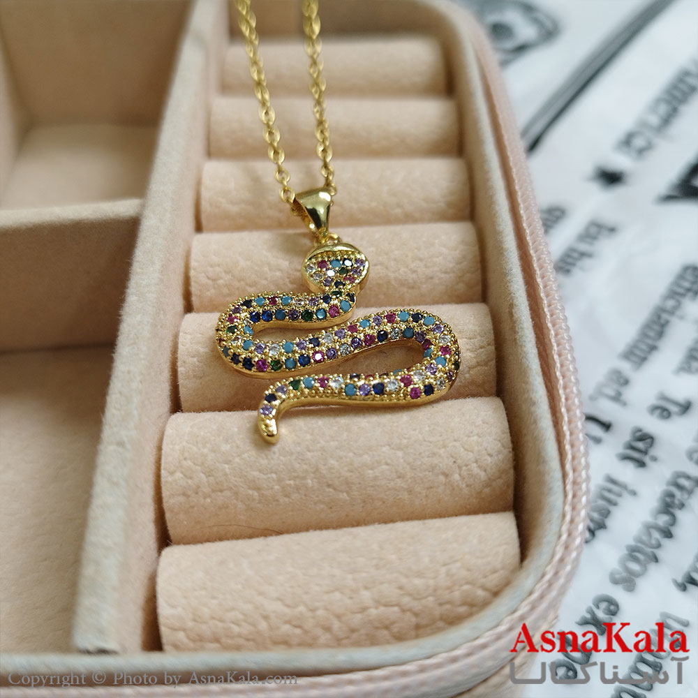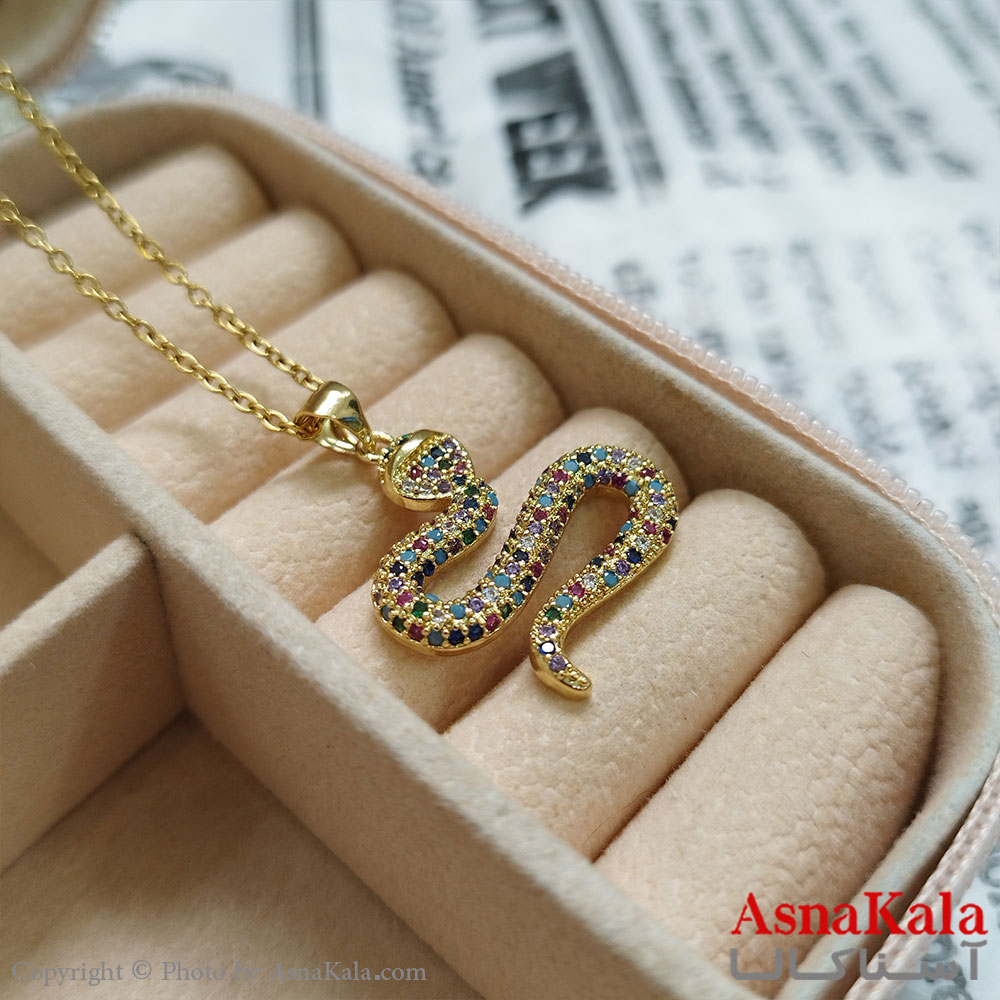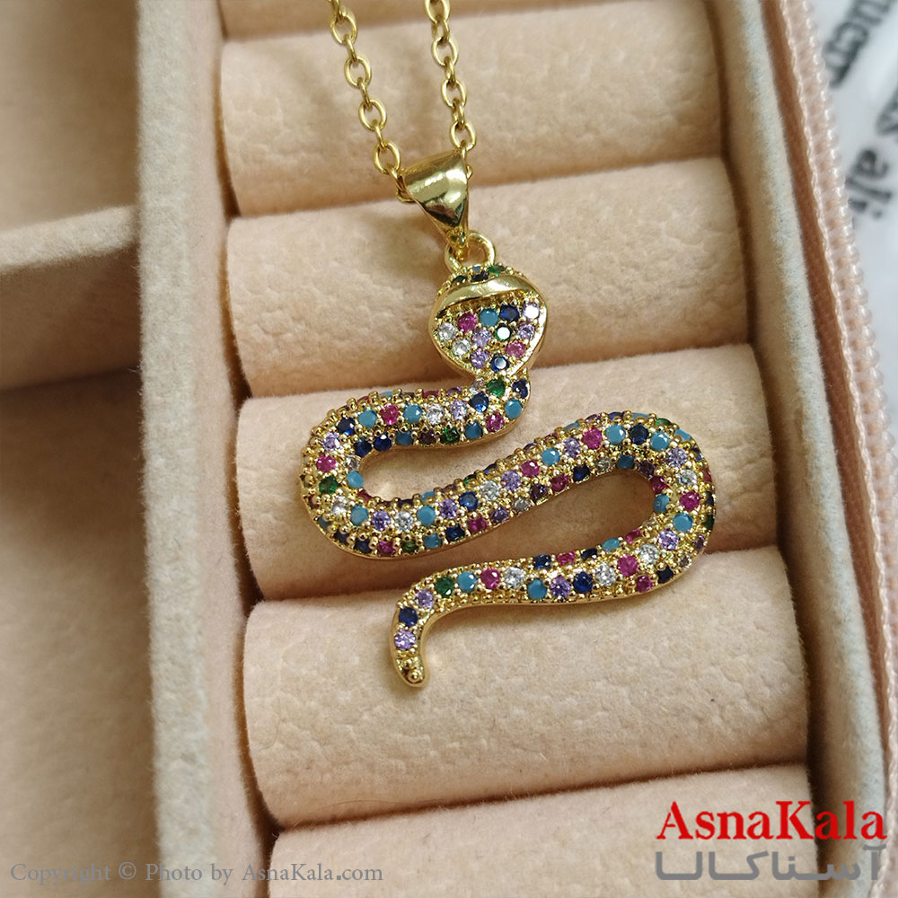 گردنبند مار طلایی دخترانه استیل با زنجیر 45 سانتی متر کد GNB162096W