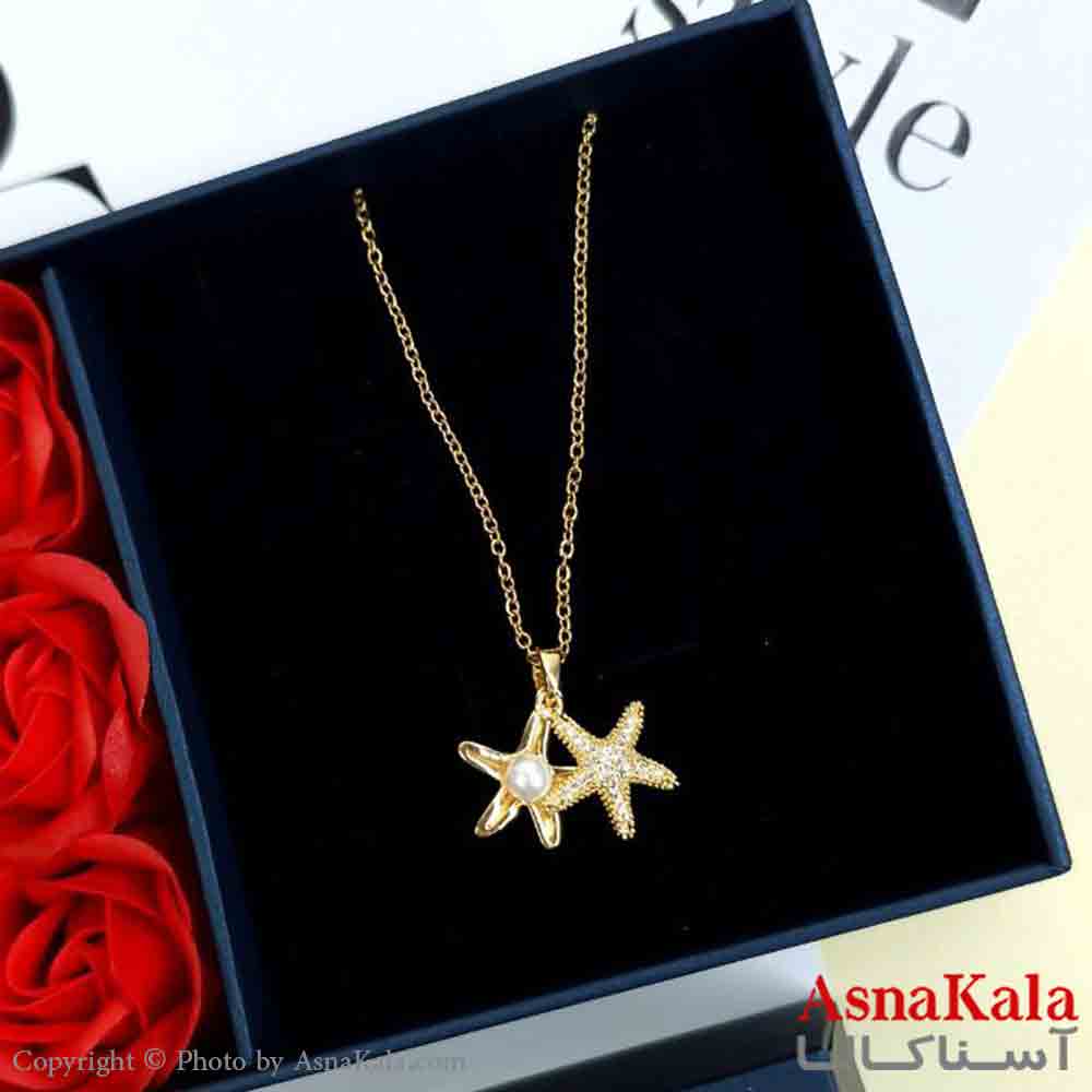گردنبند ستاره و مروارید طلایی دخترانه استیل با طول 45 سانتی متر کد GNB162001W