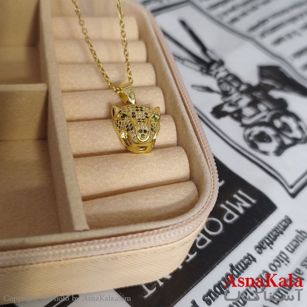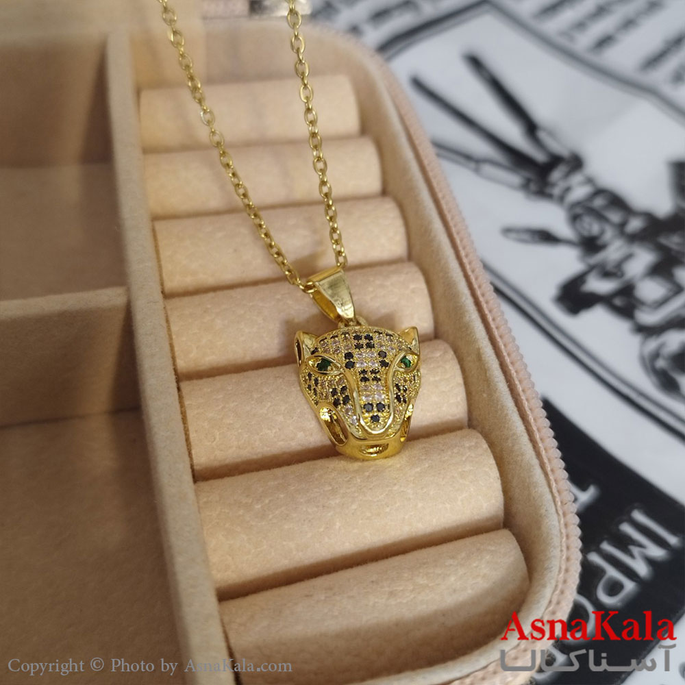 گردنبند کله ببر طلایی دخترانه استیل با زنجیر 45 سانتی متر کد GNB162054W