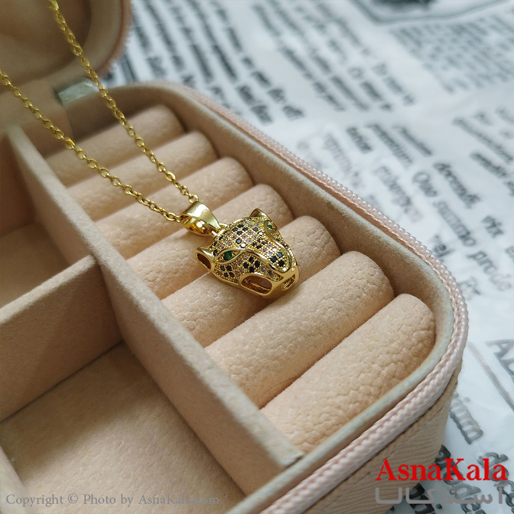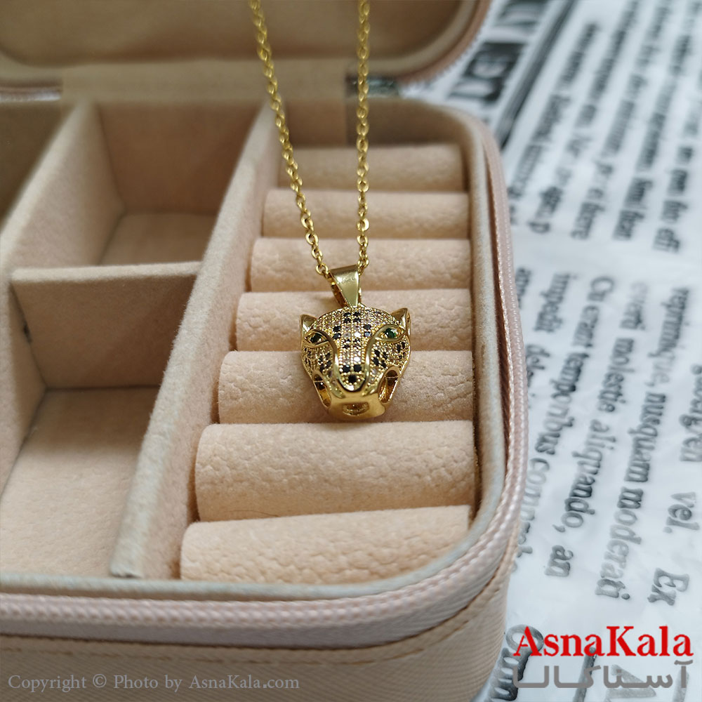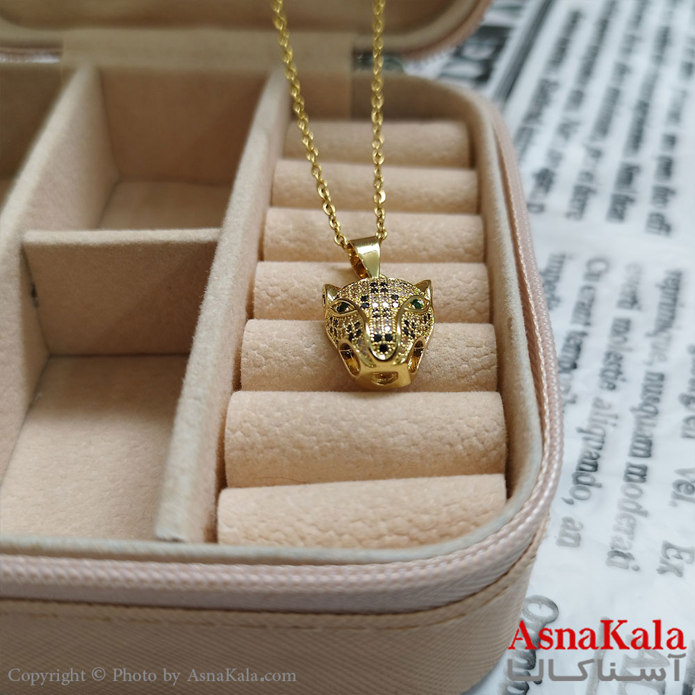 گردنبند ببر طلایی دخترانه استیل با زنجیر 45 سانتی متر کد GNB162082W