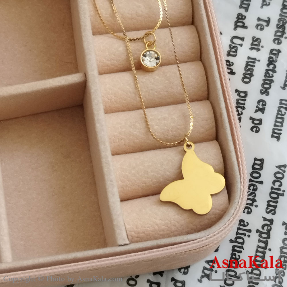 گردنبند دولاین پروانه طلایی دخترانه استیل کد GNB162194W
