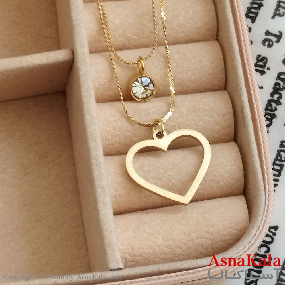 گردنبند دولاین قلب طلایی دخترانه استیل کد GNB162201W