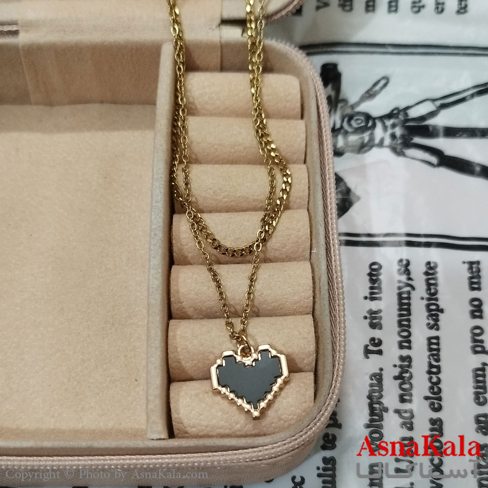 گردنبند زنانه دولاین استیل مدل قلب طلایی کد GNB162571W