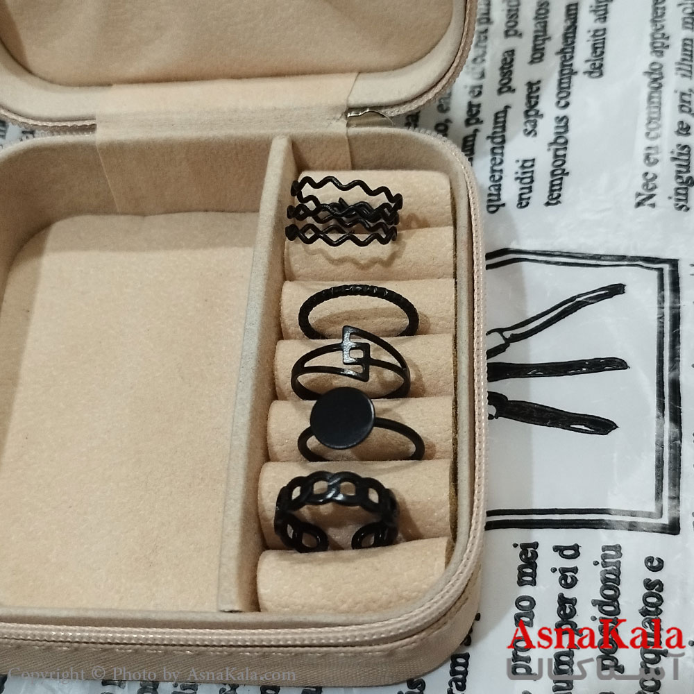 انگشتر پکی زنانه فری سایز رنگ مشکی مجموعه 5 عددی کد ANG191504W