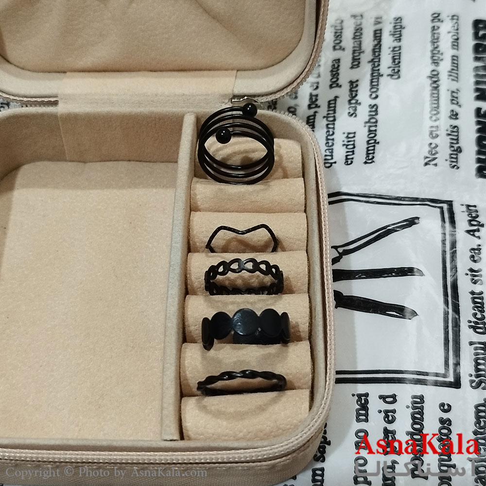 انگشتر پکی زنانه فری سایز رنگ مشکی مجموعه 5 عددی کد ANG191505W
