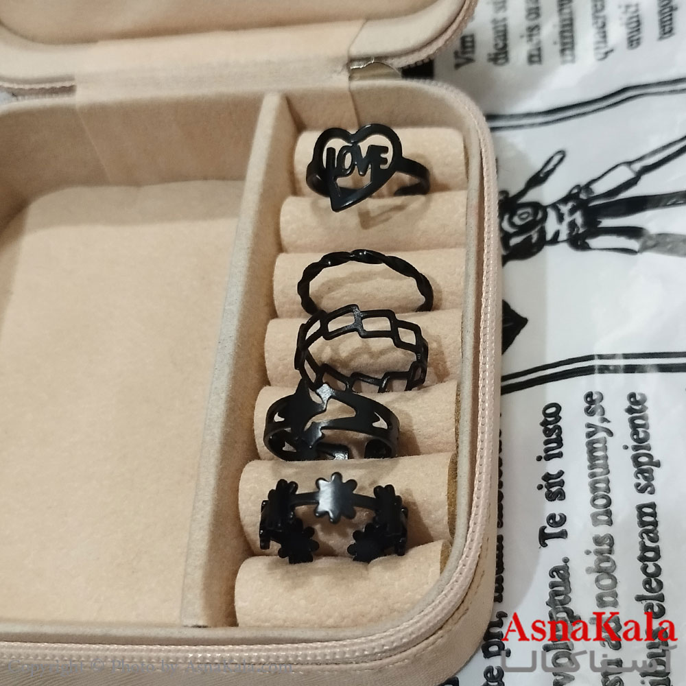انگشتر پکی زنانه فری سایز رنگ مشکی مجموعه 5 عددی کد ANG191507W