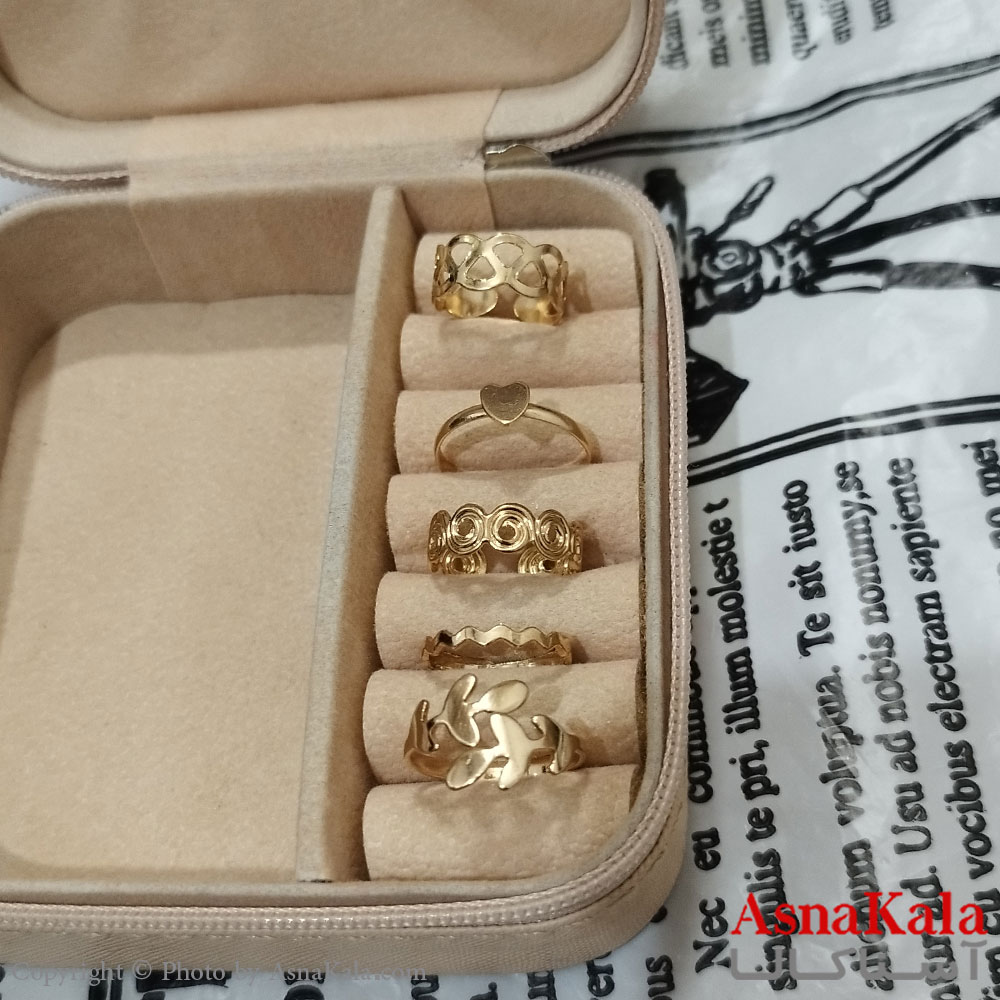 انگشتر پکی زنانه فری سایز رنگ طلایی مجموعه 5 عددی کد ANG191522W