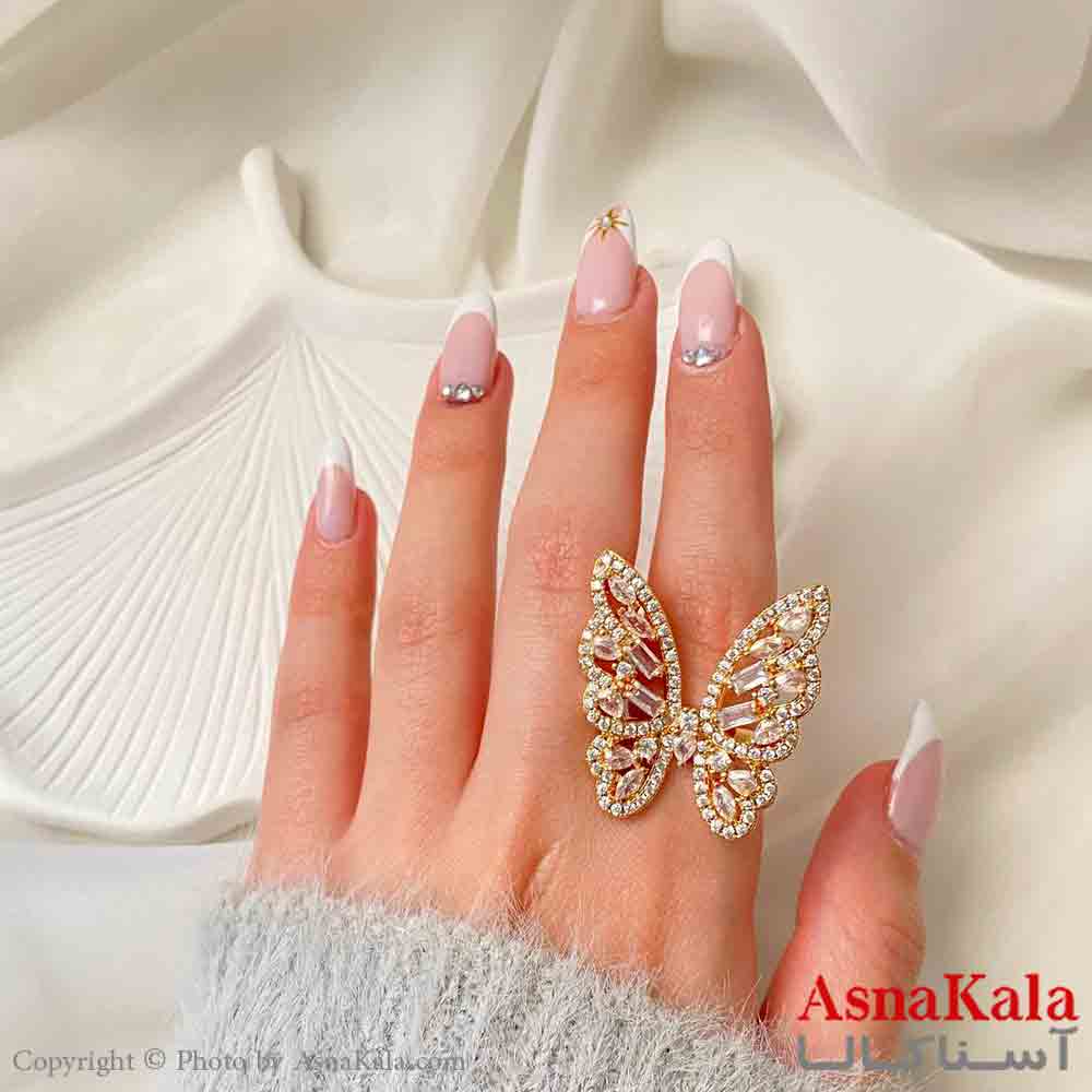 انگشتر زنانه استیل مینیمال مدل پروانه نگیندار مدرن فری سایز رنگ طلایی کد ANG19866W