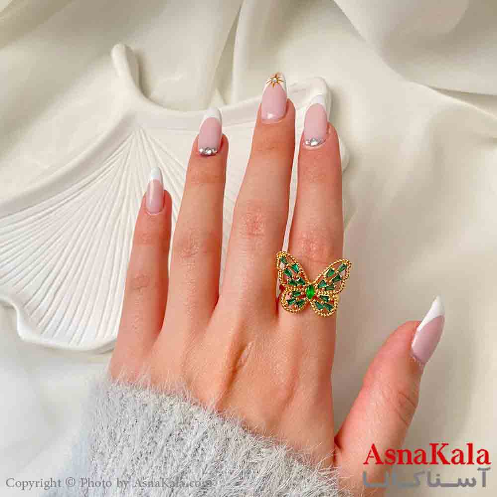 انگشتر زنانه YSX مینیمال مدل پروانه نگیندار سبز ترند فری سایز رنگ طلایی کد ANG19889W