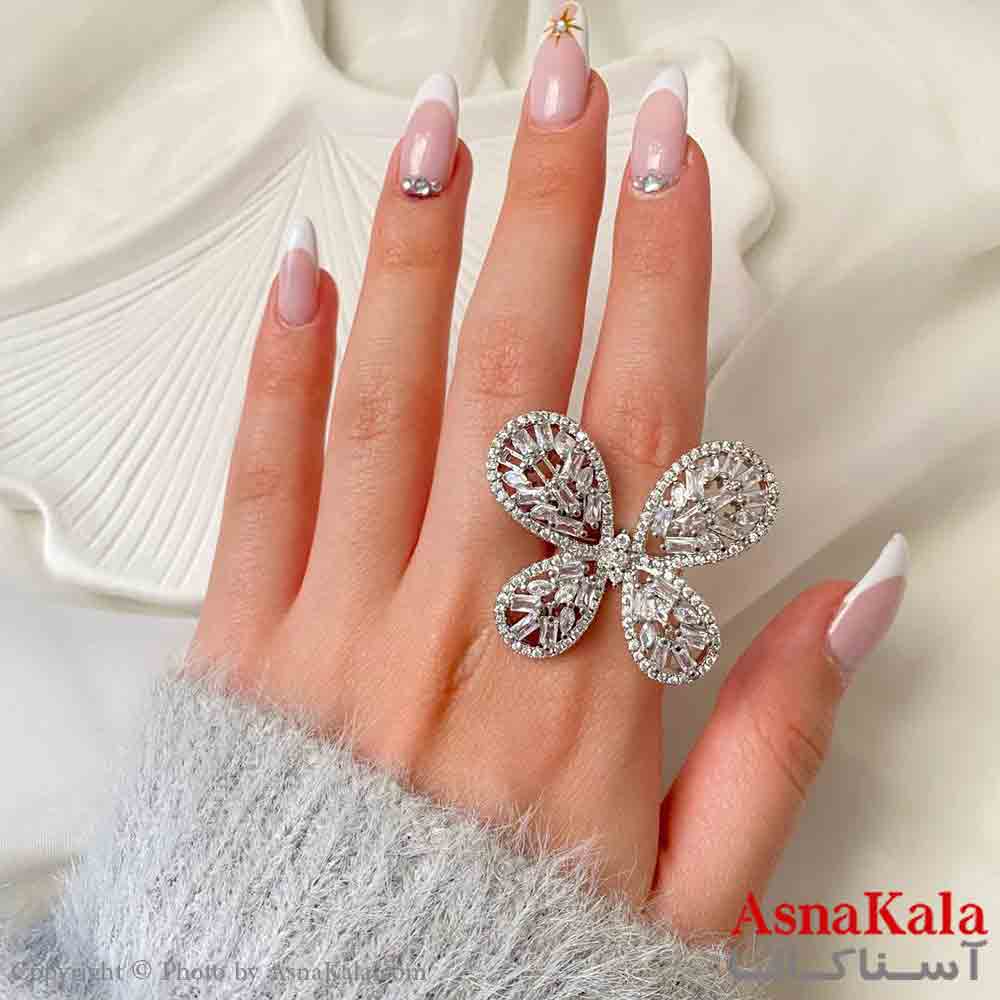 انگشتر زنانه YSX مینیمال مدل گل فول نگین ترند فری سایز رنگ نقره ای کد ANG19893W