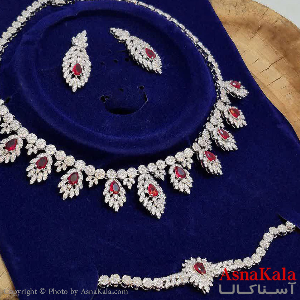 سرویس جواهری زنانه آبکاری رادیوم رنگ ثابت شامل :