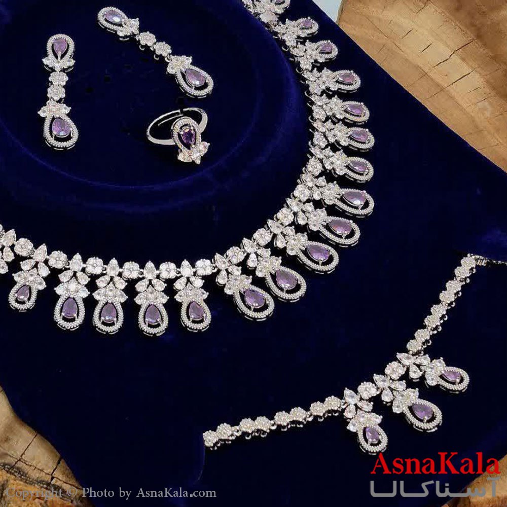 سرویس جواهری زنانه آبکاری رادیوم رنگ ثابت شامل :