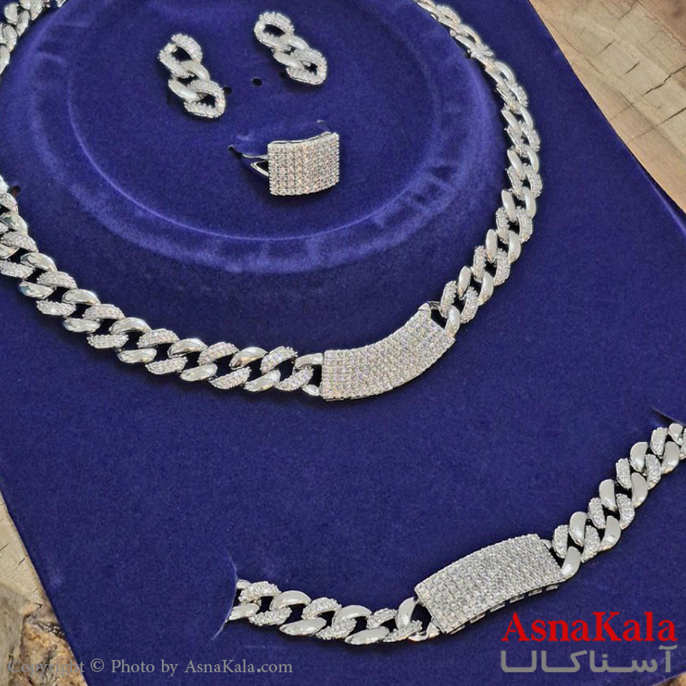 سرویس جواهری کامل شامل گردنبند و گوشواره و دستبند و انگشتر آبکاری رادیوم کد NIM141166W