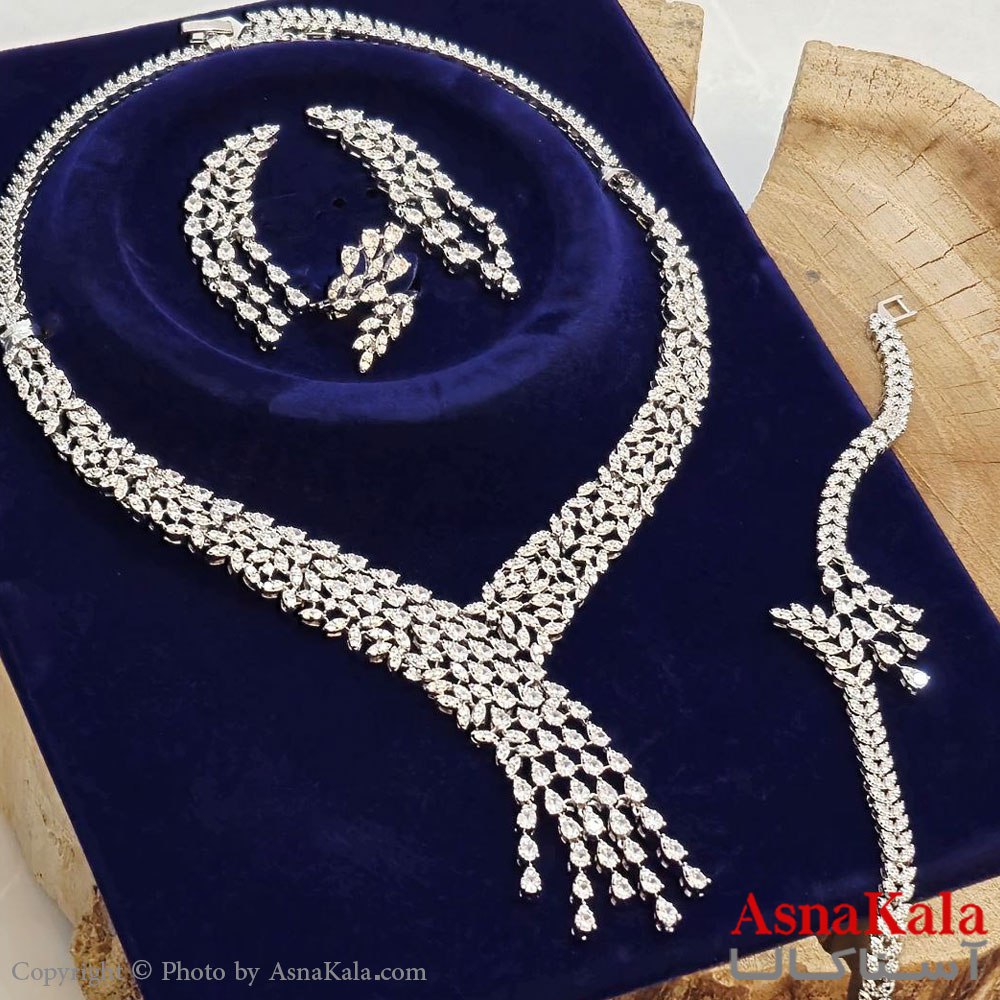 سرویس جواهری کامل شامل گردنبند و گوشواره و دستبند و انگشتر آبکاری رادیوم کد NIM141181W