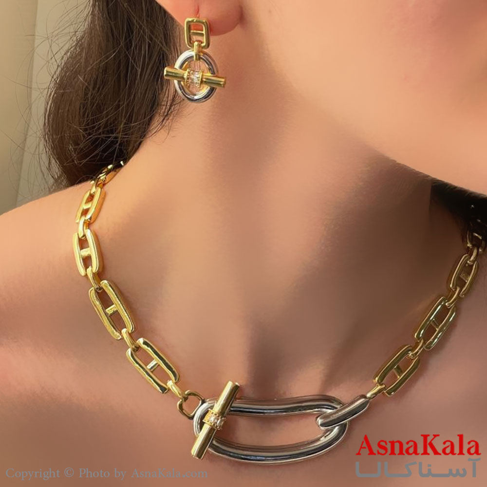 نیم ست زنانه هرمس شامل گردنبند و گوشواره ترند رنگ طلایی کد NIM141061W