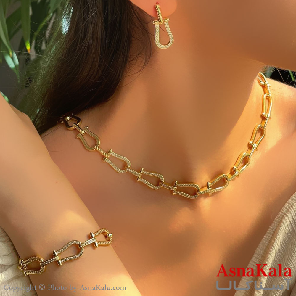نیم ست زنانه نگیندار شامل گردنبند و دستبند و گوشواره ترند رنگ طلایی کد NIM141065W
