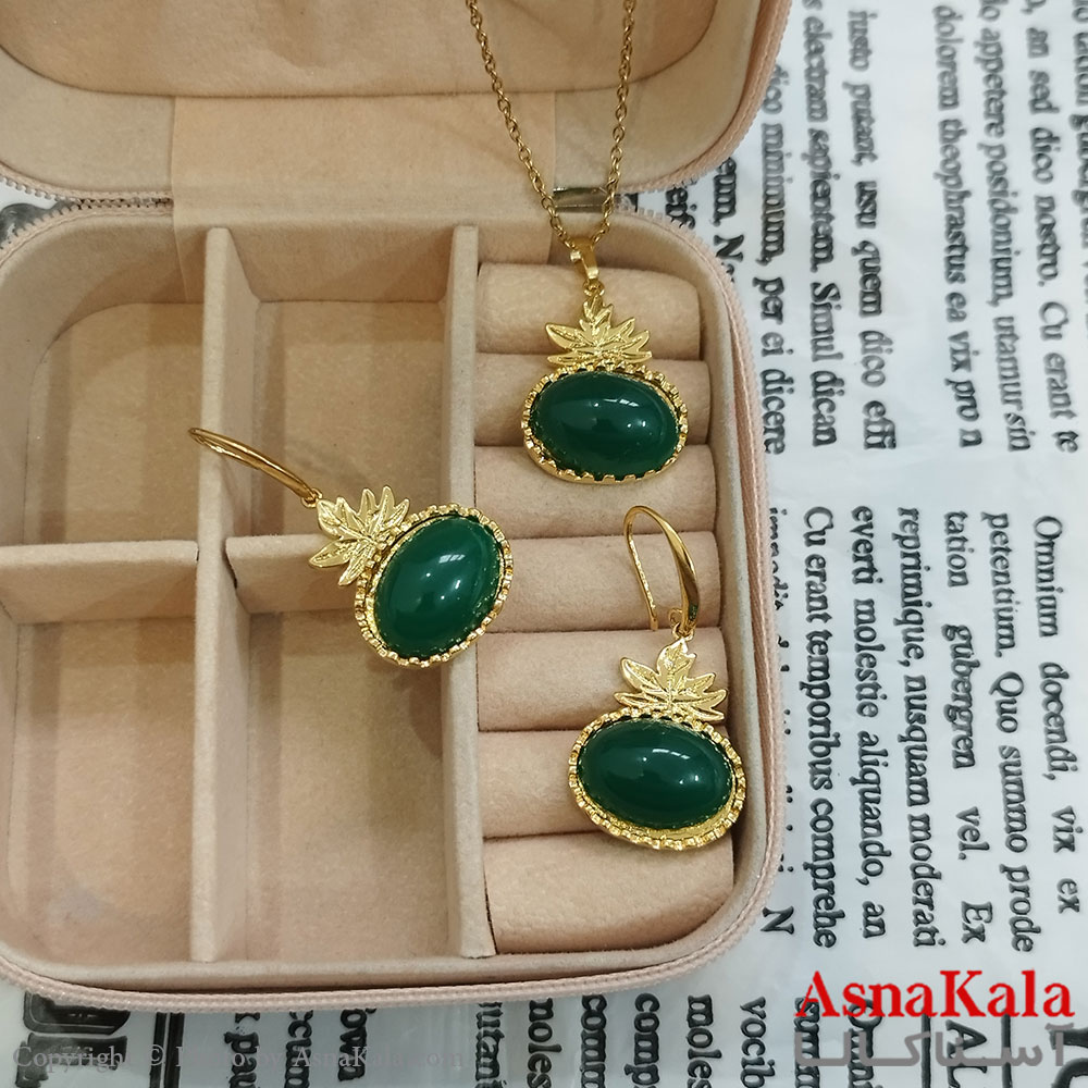نیم ست زنانه شامل گردنبند و گوشواره مدل برگ نگین سبز رنگ طلایی کد NIM141113W