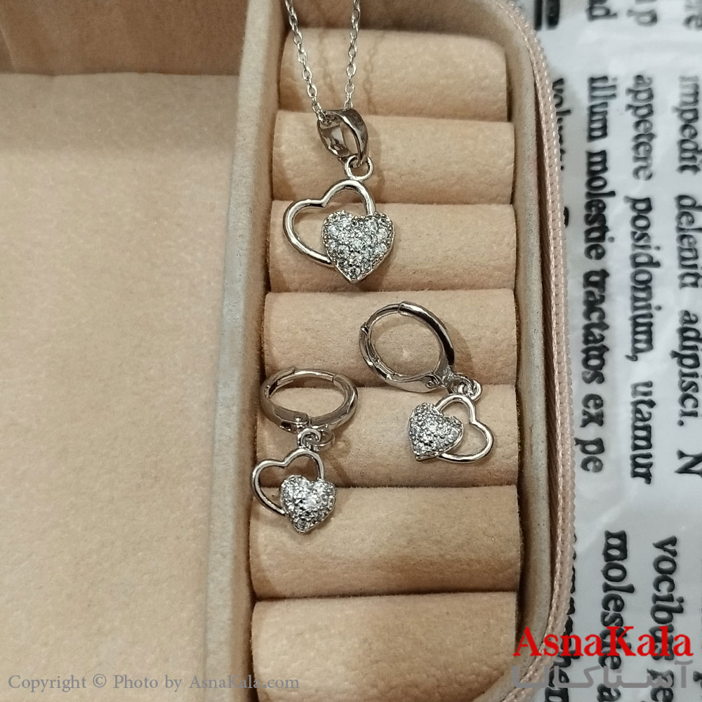نیم ست زنانه قلب شامل گردنبند و گوشواره نگین دار نقره ای کد NIM141218W