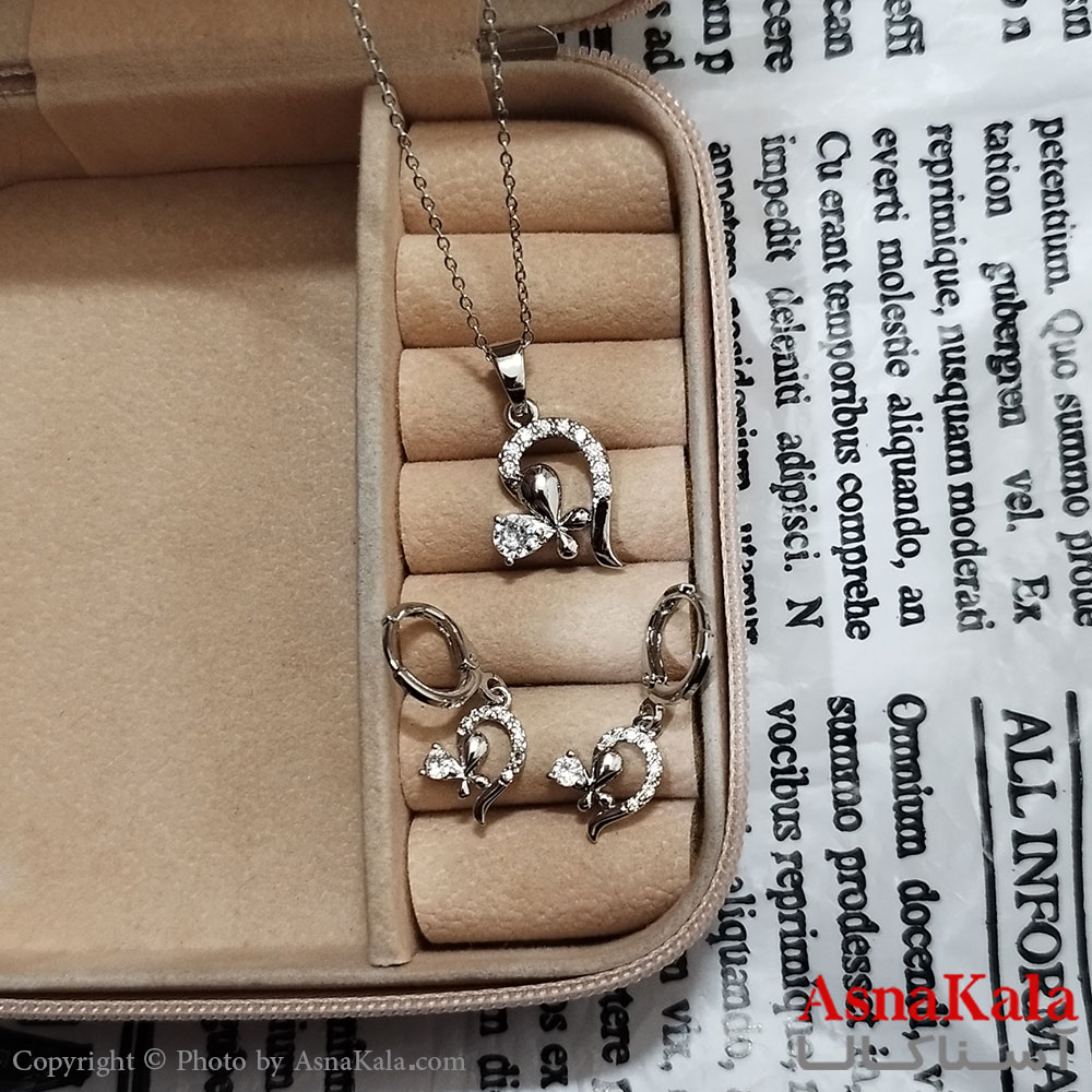 نیم ست زنانه شامل گردنبند و گوشواره نگین دار نقره ای کد NIM141227W