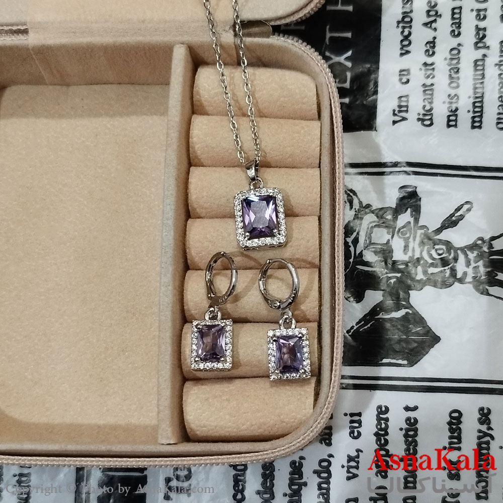نیم ست زنانه شامل گردنبند و گوشواره نگین دار نقره ای کد NIM141249W