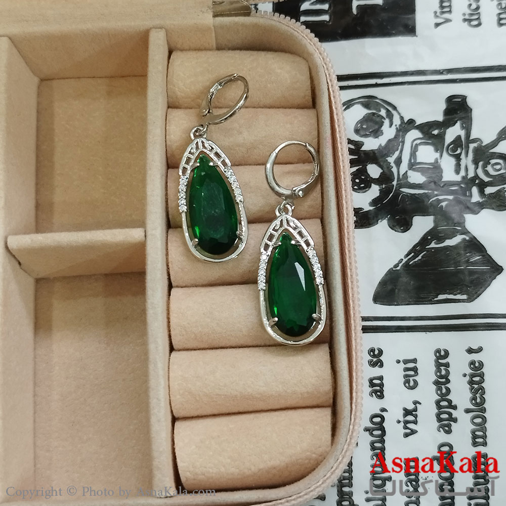 نیم ست زنانه شامل گردنبند و گوشواره جواهری نگین سبز رنگ نقره ای کد NIM141137W