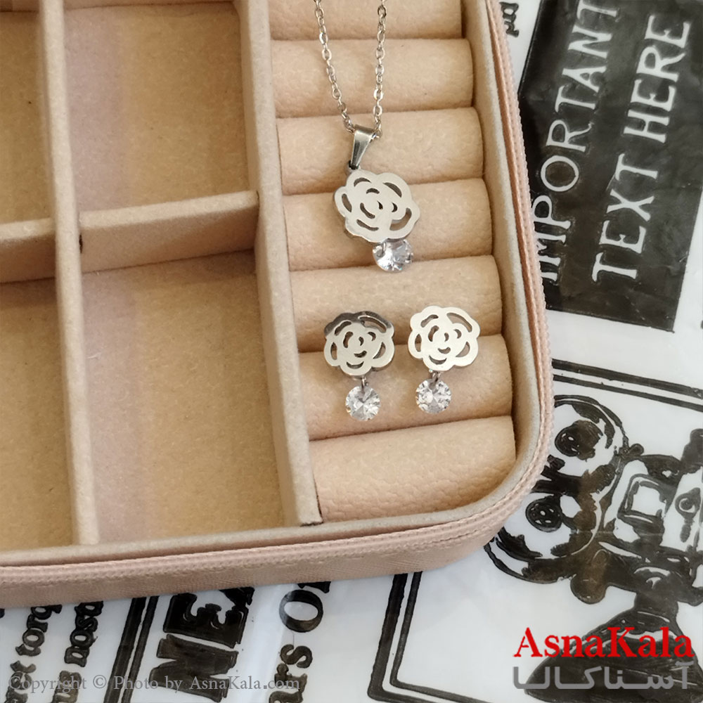 نیم ست زنانه استیل، جنس آن از استیل رنگ ثابت که تشکیل شده از یک عدد گردنبند و گوشواره استیل در بسته بندی هدیه از فروشگاه اینترنتی آسناکالا خریداری شود.