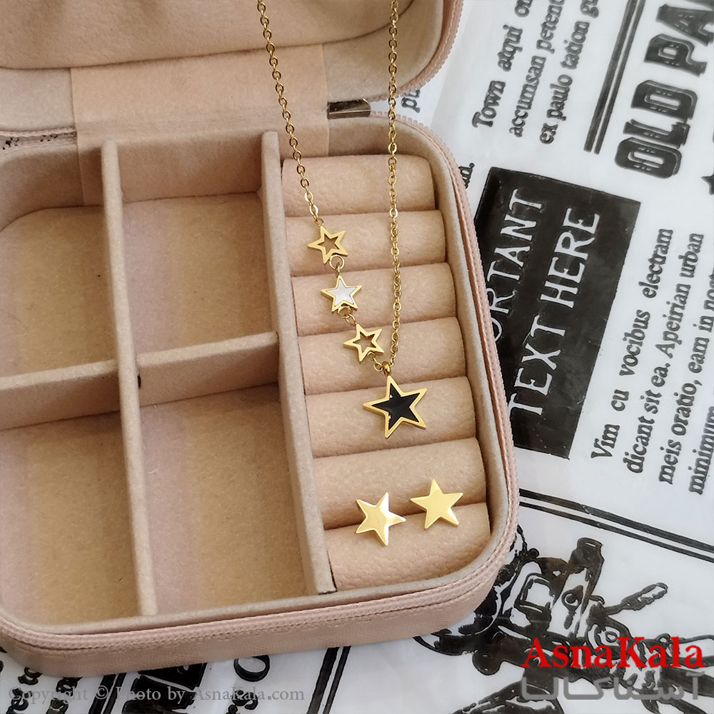 نیم ست زنانه استیل، جنس آن از استیل رنگ ثابت که تشکیل شده از یک عدد گردنبند و گوشواره استیل در بسته بندی هدیه از فروشگاه اینترنتی آسناکالا خریداری شود.