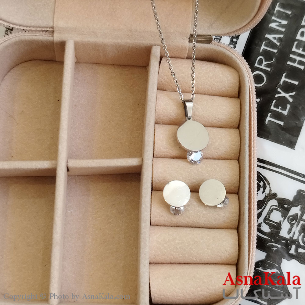 نیم ست زنانه استیل، جنس آن از استیل رنگ ثابت که تشکیل شده از یک عدد گردنبند و گوشواره استیل در بسته بندی هدیه از فروشگاه اینترنتی آسناکالا خریداری شود.