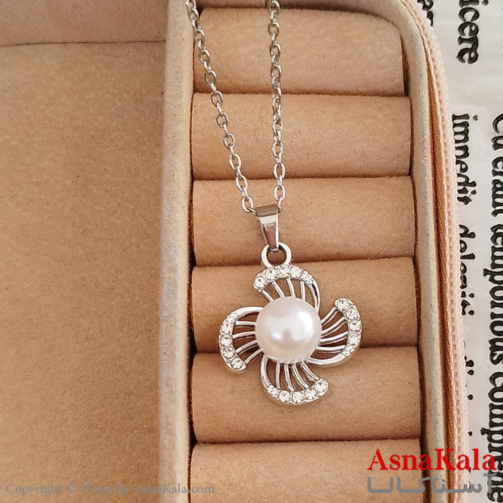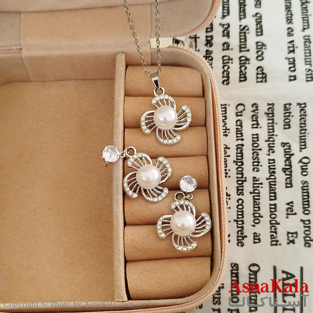 نیم ست زنانه شامل گردنبند و گوشواره مدل گل مرواریدی کد NIM141188W