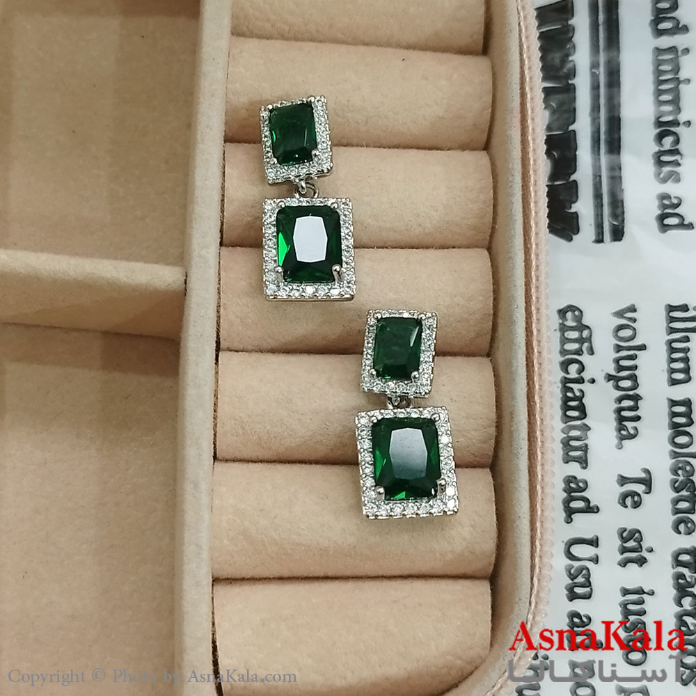 نیم ست زنانه وای اس ایکس شامل گردنبند و گوشواره جواهری نگین سبز رنگ نقره ای کد NIM141148W