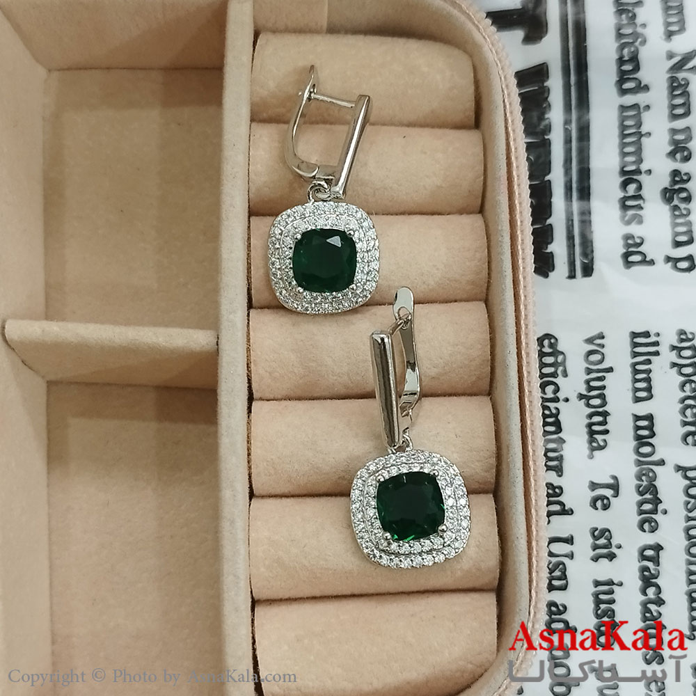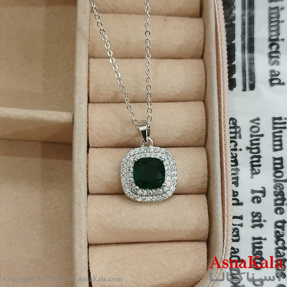 نیم ست زنانه وای اس ایکس شامل گردنبند و گوشواره جواهری نگین سبز رنگ نقره ای کد NIM141149W