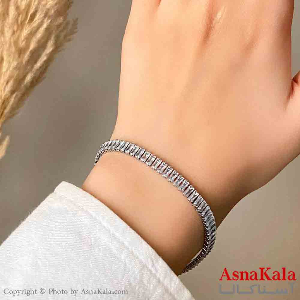 دستبند دخترانه پینترستی استیل تنیسی نگین مستطیل رنگ نقره ای کد DSB181430W