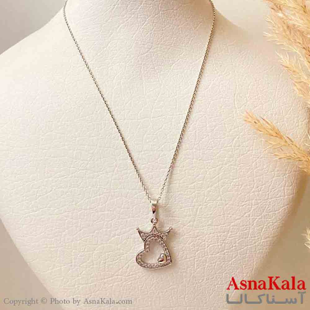 آویز ژوپینگ مینیمال دخترانه مدل قلب و تاج نگین رنگ نقره ای ترند کد GNB161827W
