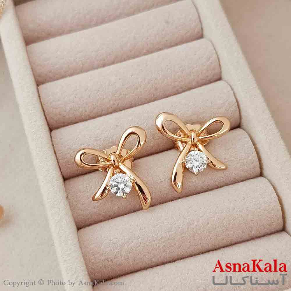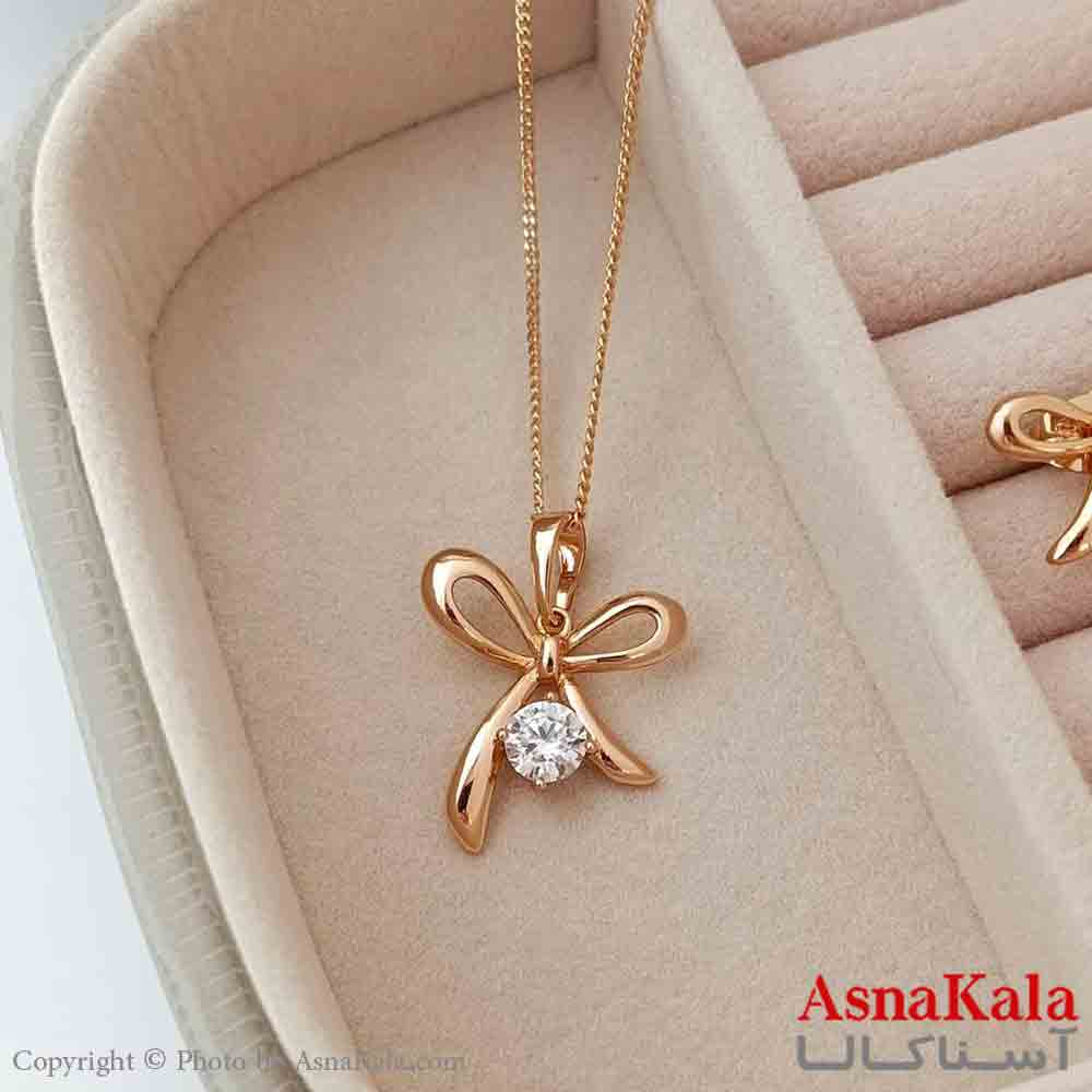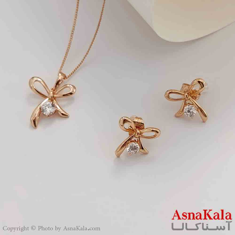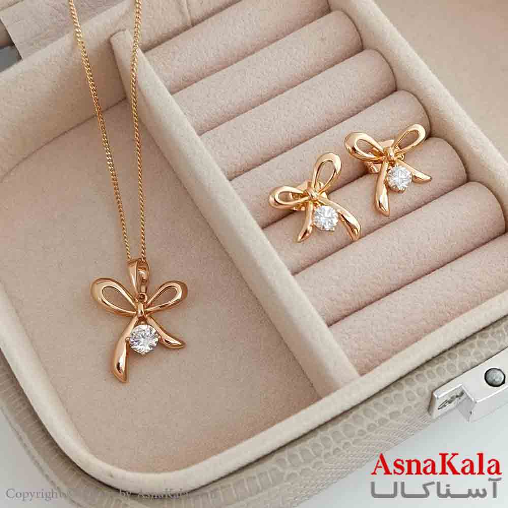 نیم ست زنانه پاپیون ژوپینگ شامل گوشواره و گردنبند رنگ طلایی کد NIM141026W