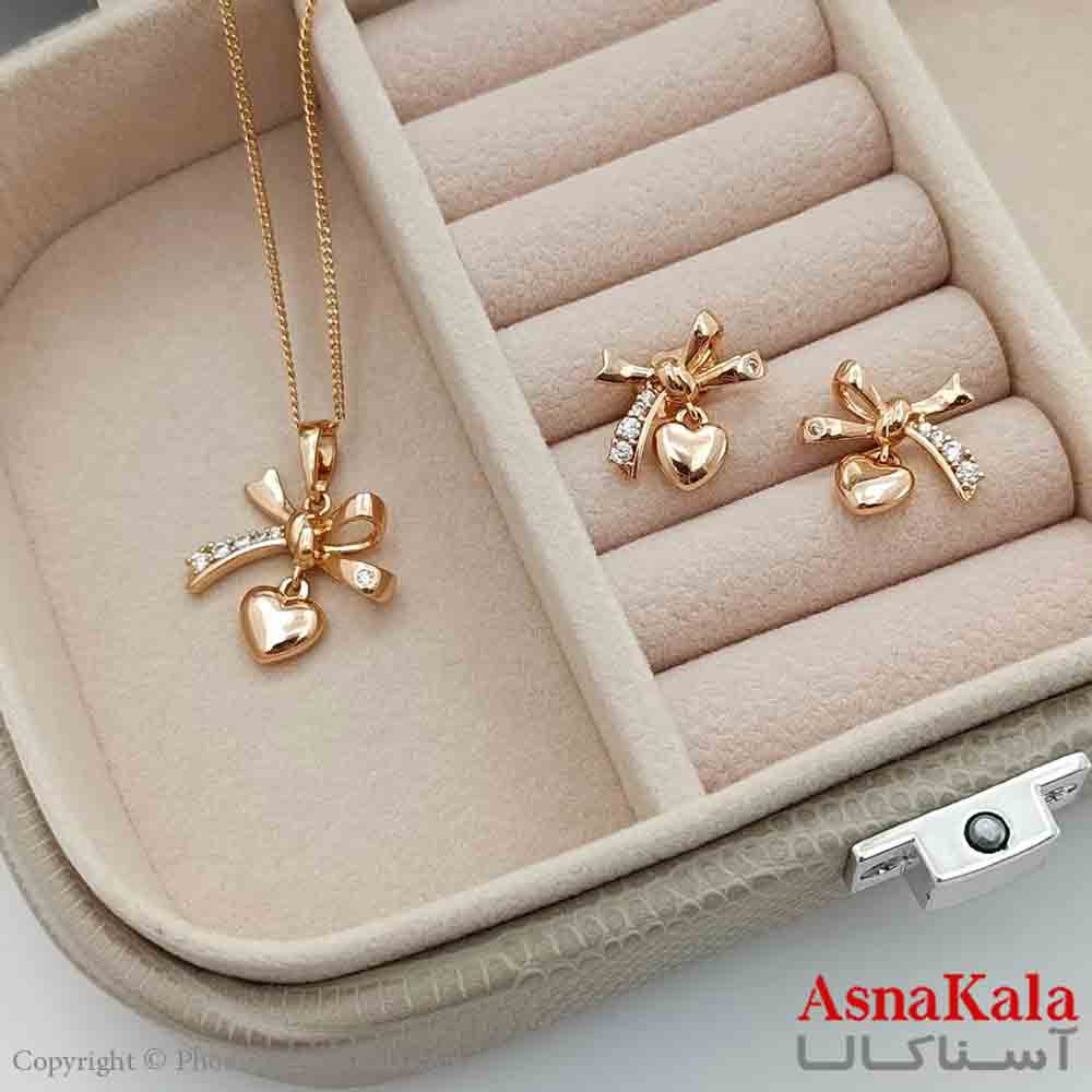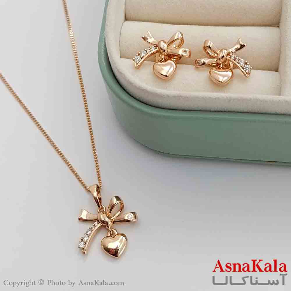 نیم ست زنانه پاپیون ژوپینگ شامل گوشواره و گردنبند رنگ طلایی کد NIM141031W