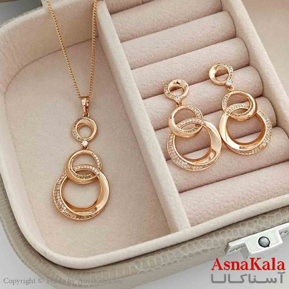 نیمست زنانه شوپینگ، جنس آن از مس با آبکاری طلا رنگ ثابت که تشکیل شده از گردنبند و گوشواره در بسته بندی هدیه از فروشگاه اینترنتی آسناکالا خریداری شود.