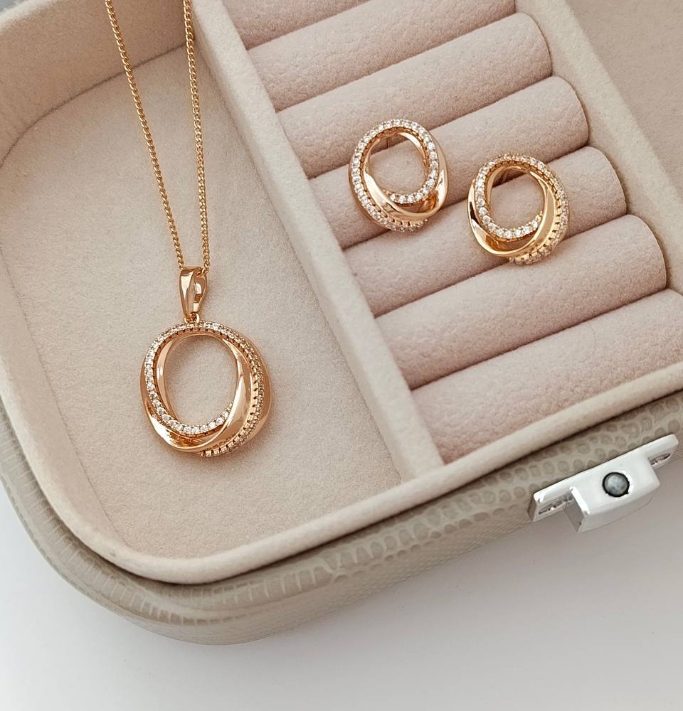 نیمست زنانه شوپینگ، جنس آن از مس با آبکاری طلا رنگ ثابت که تشکیل شده از گردنبند و گوشواره در بسته بندی هدیه از فروشگاه اینترنتی آسناکالا خریداری شود.