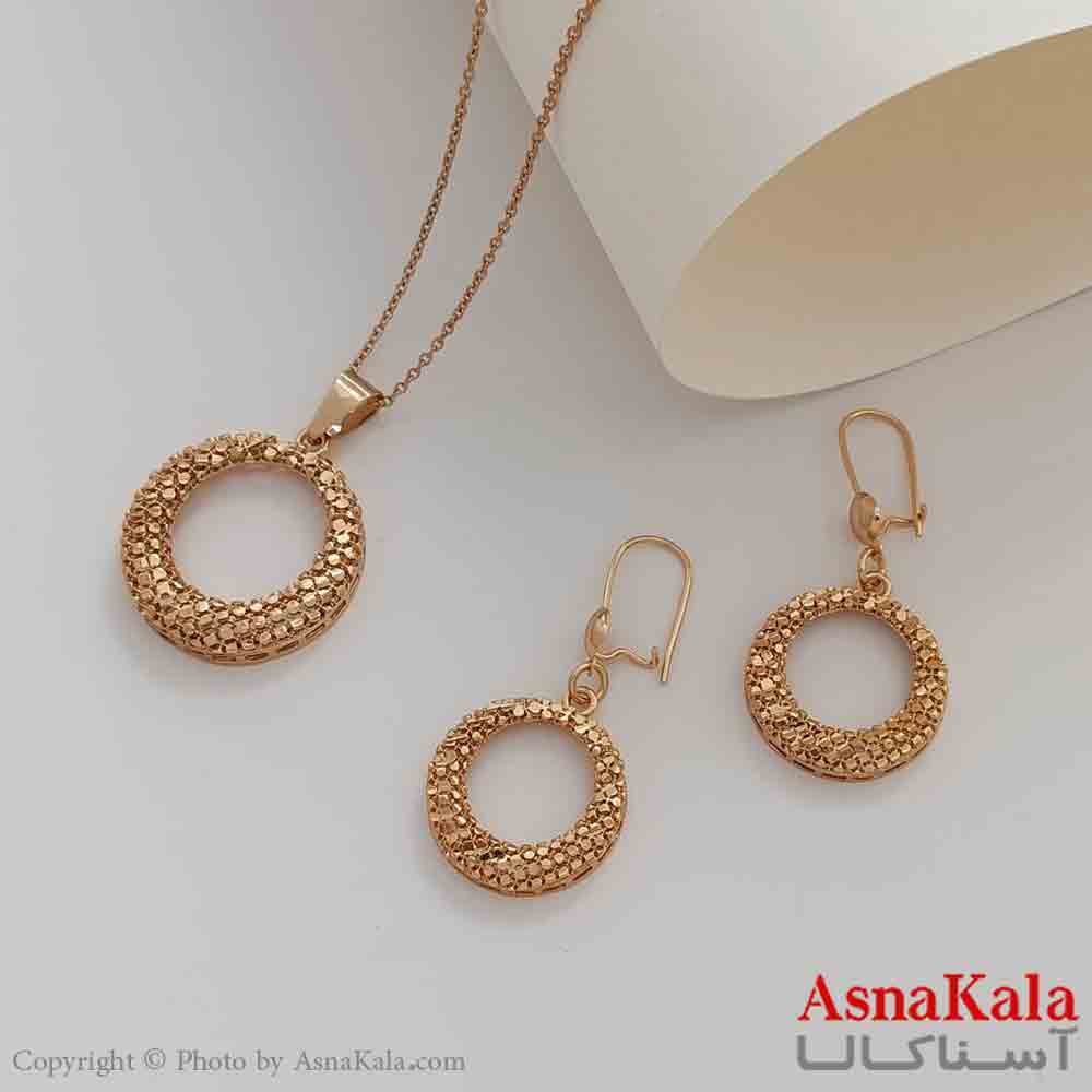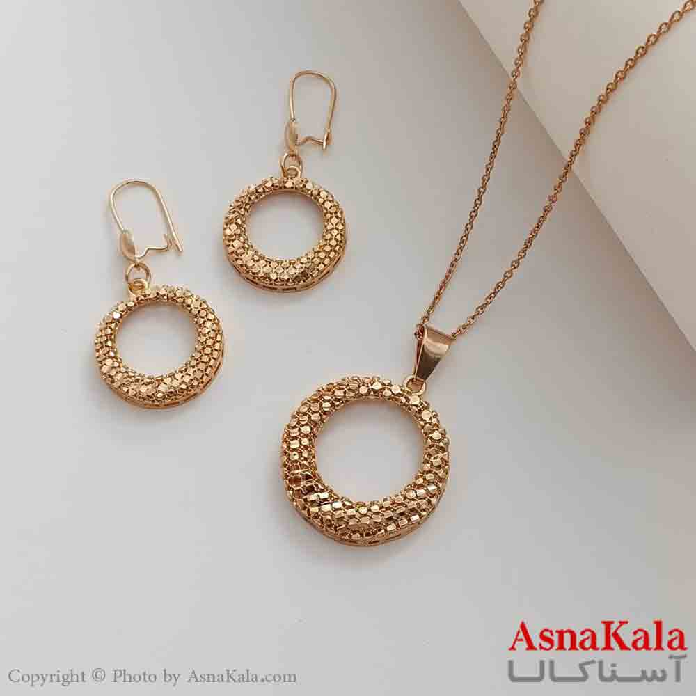 نیمست زنانه شوپینگ، جنس آن از مس با آبکاری طلا رنگ ثابت که تشکیل شده از گردنبند و گوشواره در بسته بندی هدیه از فروشگاه اینترنتی آسناکالا خریداری شود.