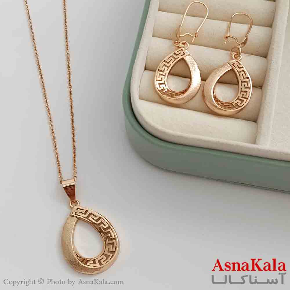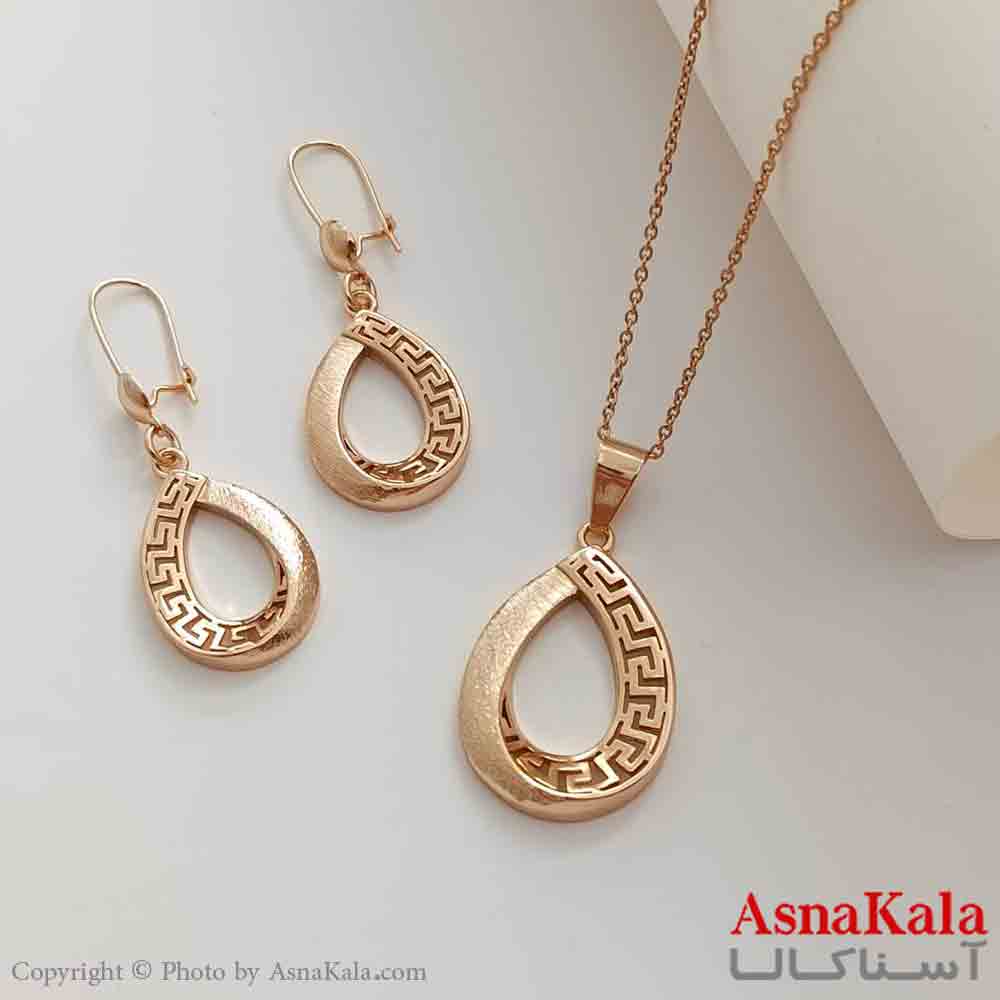 نیمست زنانه شوپینگ، جنس آن از مس با آبکاری طلا رنگ ثابت که تشکیل شده از گردنبند و گوشواره در بسته بندی هدیه از فروشگاه اینترنتی آسناکالا خریداری شود.