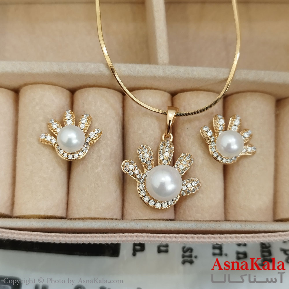 نیمست زنانه شوپینگ، جنس آن از مس با آبکاری طلا رنگ ثابت که تشکیل شده از گردنبند و گوشواره در بسته بندی هدیه از فروشگاه اینترنتی آسناکالا خریداری شود.