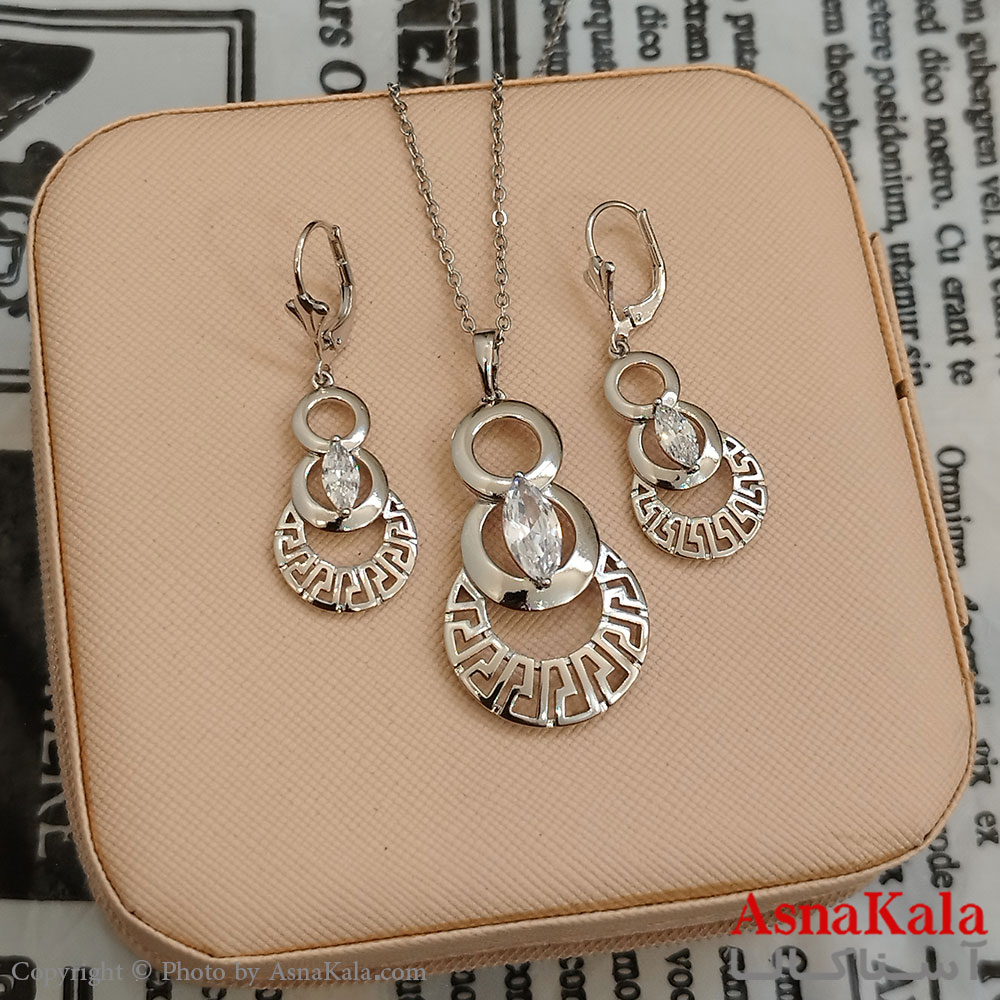 نیم ست زنانه ژوپینگ شامل گوشواره و گردنبند رنگ نقره ای کد NIM141090W