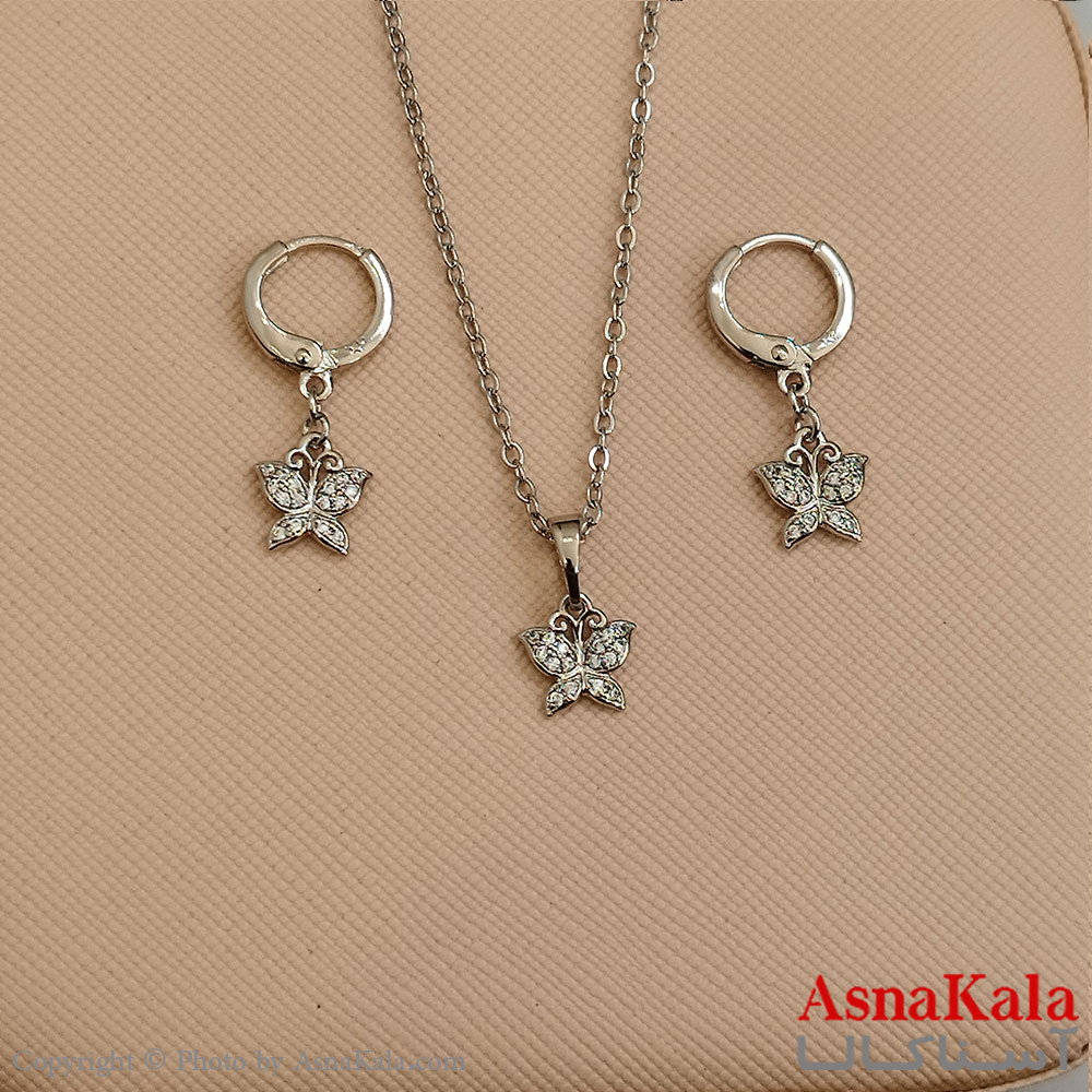 نیم ست زنانه ژوپینگ شامل گوشواره و گردنبند رنگ نقره ای کد NIM141091W