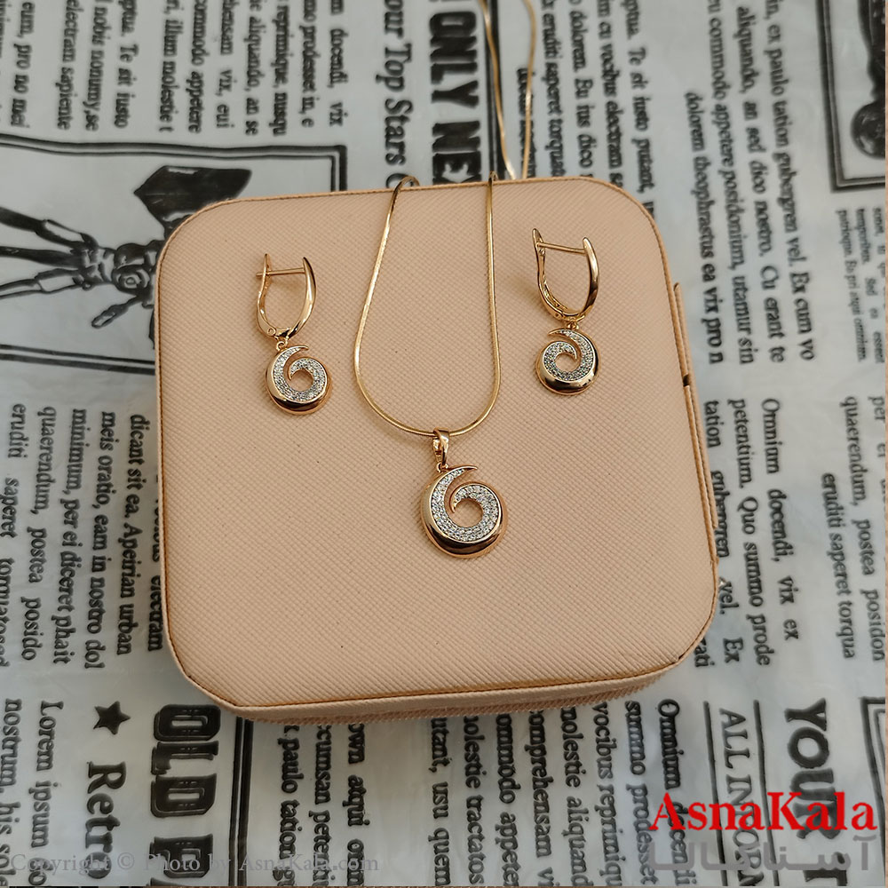 نیمست زنانه شوپینگ، جنس آن از مس با آبکاری طلا رنگ ثابت که تشکیل شده از گردنبند و گوشواره در بسته بندی هدیه از فروشگاه اینترنتی آسناکالا خریداری شود.