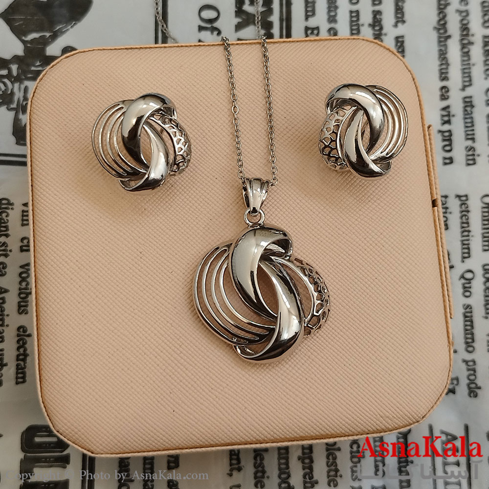 نیم ست زنانه ژوپینگ شامل گوشواره و گردنبند رنگ نقره ای کد NIM141094W