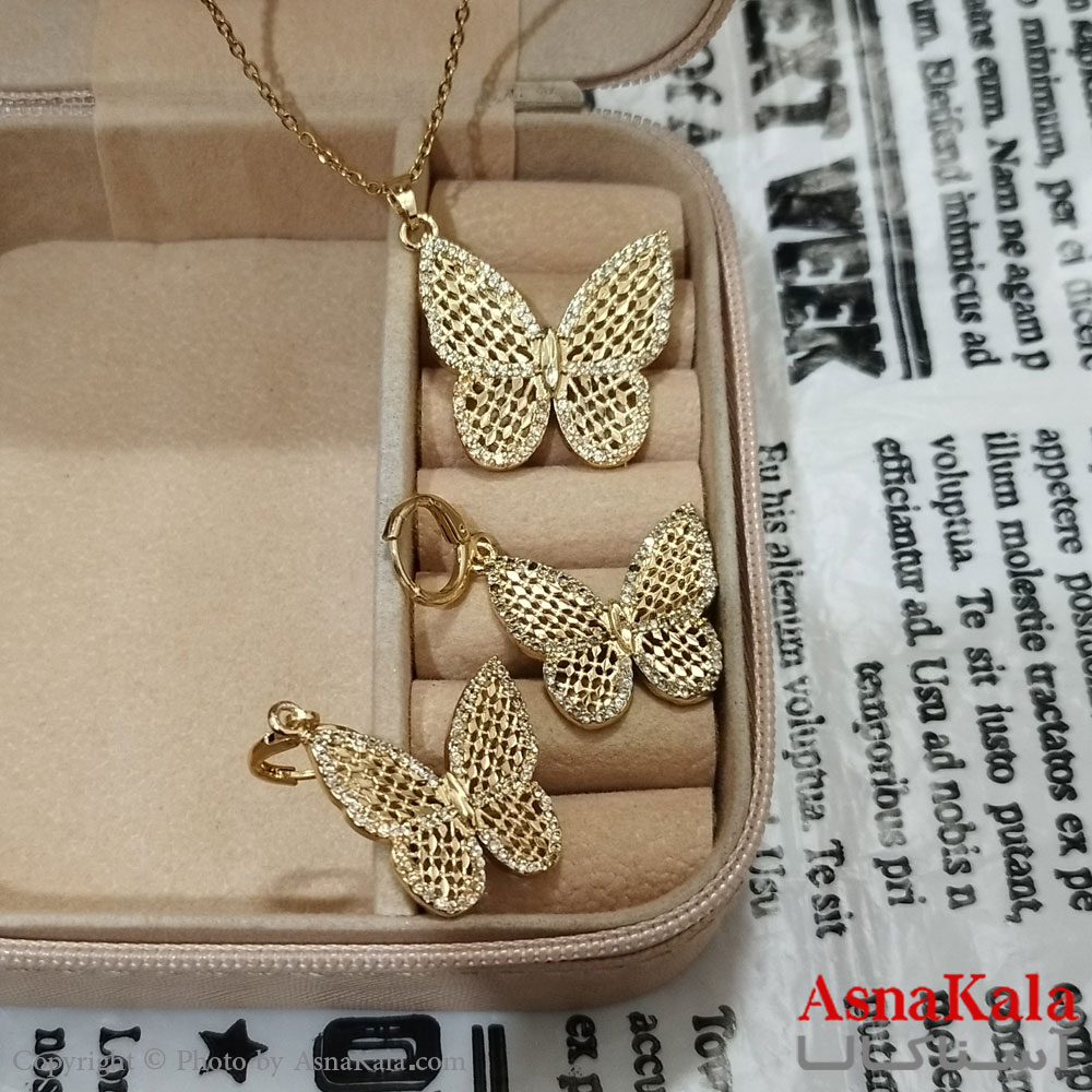 نیم ست زنانه برنجی پروانه شامل گردنبند و گوشواره کد NIM141209W