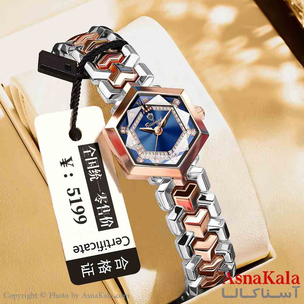 خرید ساعت مچی زنانه بین باند بند استیل با تکنولوژی کوارتز از جنس بدنه فلز است، که در بسته بندی هدیه توسط آسناکالا به فروش می رسد.